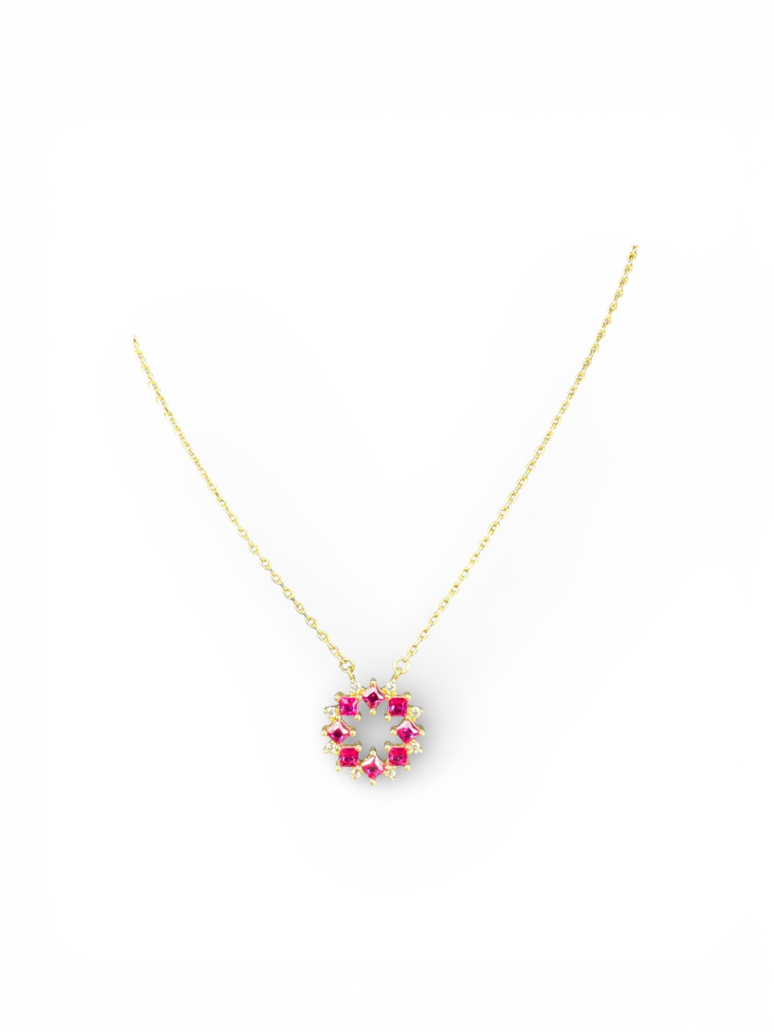The Fine Chain Necklace & Earrings Set with Ruby Stones is crafted in solid 14K gold, designed to celebrate femininity through delicate design and vibrant color. This refined jewelry set pairs a graceful gold necklace with a gemstone pendant and matching stud earrings, creating a harmonious and sophisticated look.