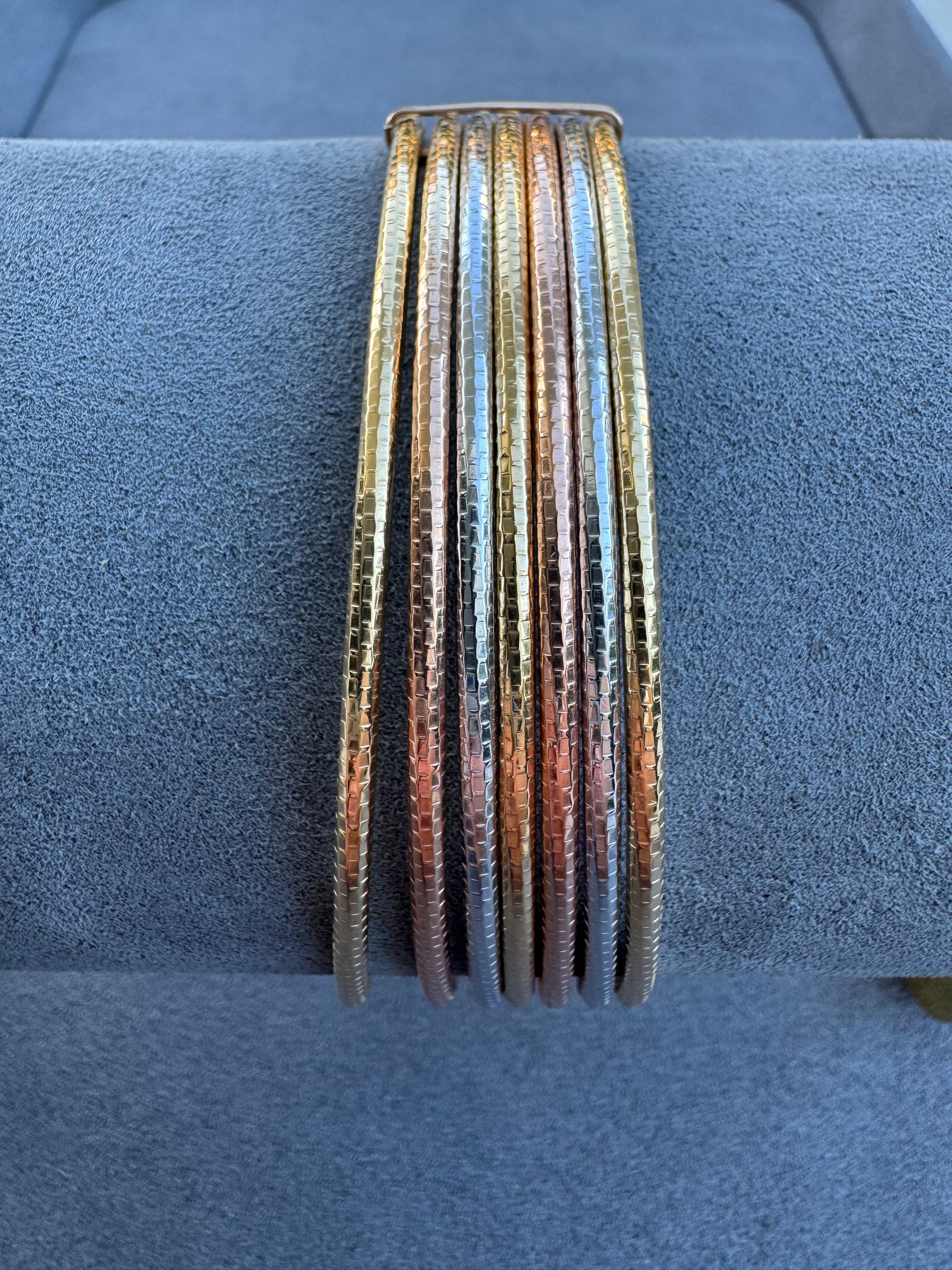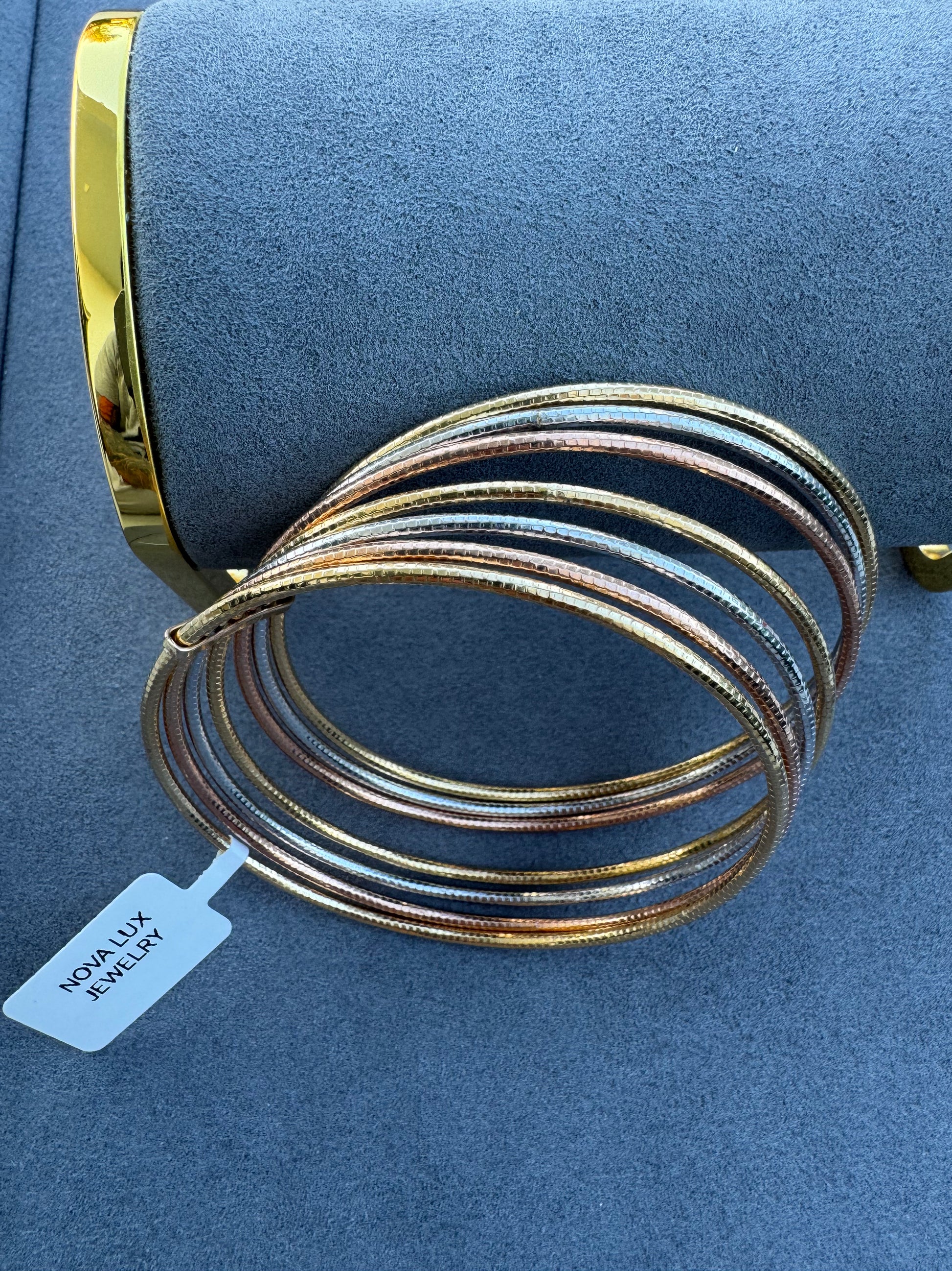 The blend of three gold tones adds visual depth and versatility, allowing this bracelet to pair seamlessly with other jewelry pieces or stand out beautifully on its own. A refined essential for those who appreciate classic luxury with a modern touch.
